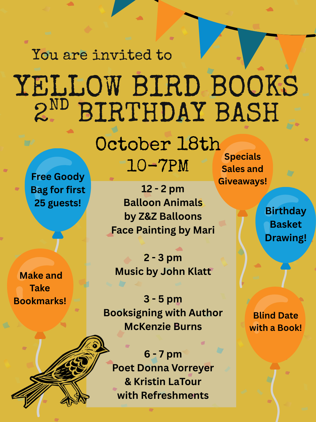 Yellow Bird Books 2nd Birthday Bash! Banned Books Week and more for October.